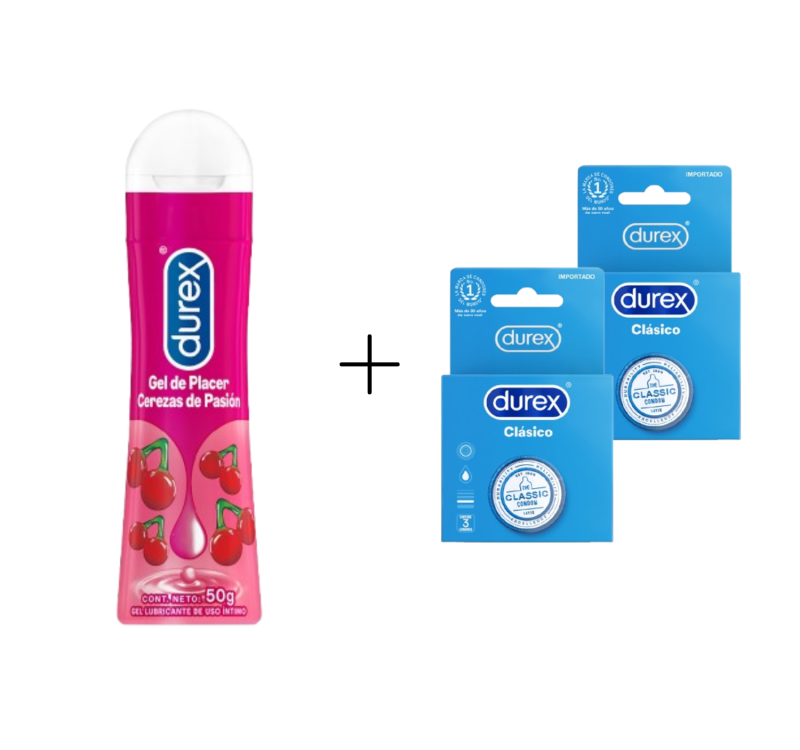 Lubricante Durex Cereza x 1und + Durex Clásico x2 und