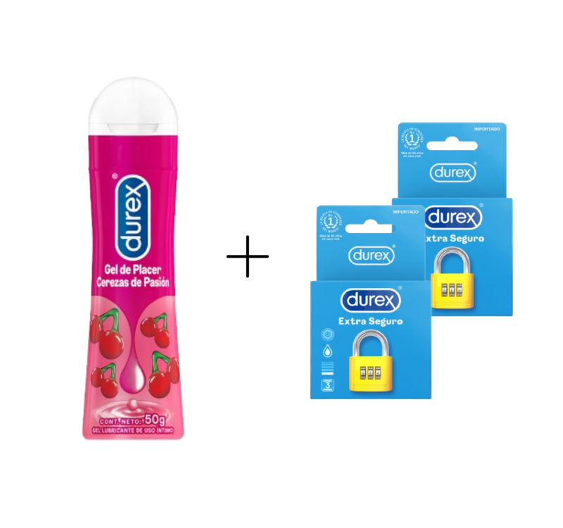 Lubricante Durex Cereza x 1und + Durex Extra Seguro x2 und